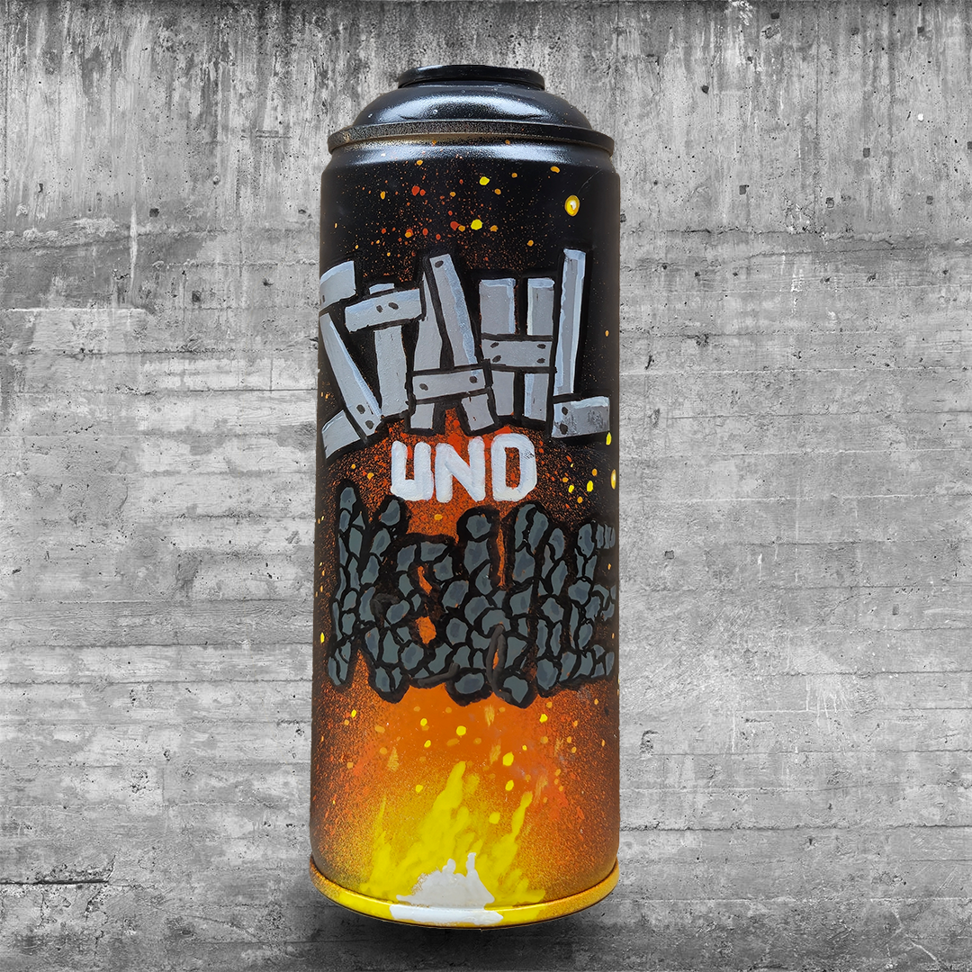 Jede Sprühdose ist ein Unikat: Mit Sprüh- und Acrylfarbe bemalt, nummeriert und auf der Bodenseite handsigniert. Außerdem mit glänzendem Klarlack versiegelt.